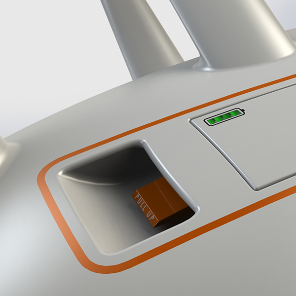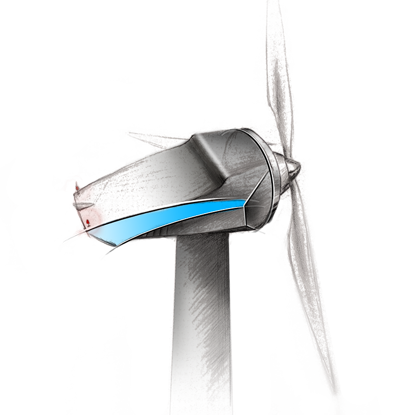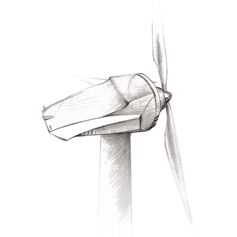 Die Windkraftanlage ist in Zusammenarbeit mit dem Unternehmen Prokon entstanden. Das Design ist aerodynamisch, um das Energiepotential zu betonen. Im hinteren Bereich sorgt eine Arbeitsplattform für ausreichend Platz, um Wartungsarbeiten durchzuführen. Von dort aus gelangt man durch eine Tür ins Innere der Anlage. Die Lufteinlässe leiten die Luft auf die Bremsen und sorgen für deren Kühlung. Das Design erinnert an Propellerflugzeuge.