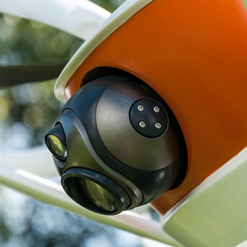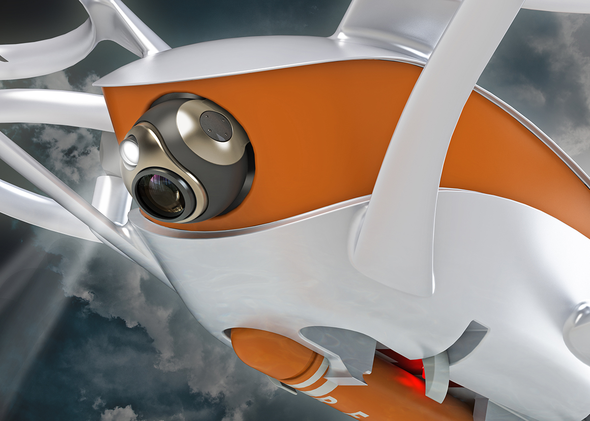 SEA - EYE ist eine Drohne, mit deren Hilfe die Suche eines Schiffbrüchigen beschleunigt werden kann. Die Drohne kann an Bord von Schiffen einzeln oder auch als „Schwarm" stationiert sein. So ist ein sofortiger Beginn der Suche möglich und die über Bord gegangene Person gerät nicht außer Sicht. SEA - EYE kann einen selbst aufblasbaren Rettungsring abwerfen, um dem Hilfebedürftigen bis zu seiner Rettung bessere Überlebenschancen zu ermöglichen. Die Rotorausleger sind flügelförmig, dadurch entsteht mehr Auftrieb und die Drohne kann länger in der Luft bleiben, außerdem sind die Rotoren ummantelt, was ebenfalls zu einer besseren Aerodynamik führt.