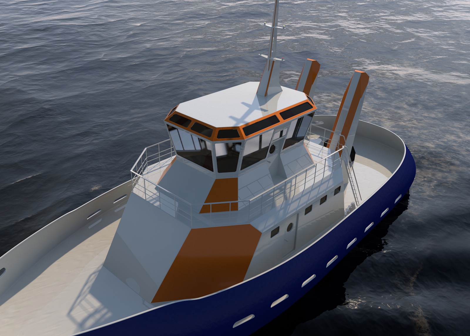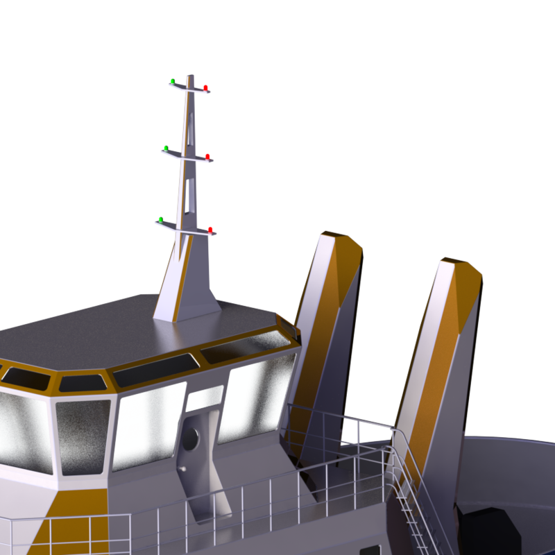 Der Schlepper des Herstellers VOITH ist ein kleines, wendiges Kraftpaket, welches in der Lage ist Ozeanriesen zu schleppen. Bei der Gestaltung war es besonders wichtig, dass diese Kraft zum Ausdruck kommt. Der Aufbau ist achtkantig. Dies vermittelt den Eindruck von Stabilität, da diese Geometrie eine hohe Statik aufweist. Durch die pyramidenartige Stufung entstehen Trapeze, welche sich auch in Schornsteinen und im Lichtmast wiederfinden. Auch die Brücke ist achteckig und unterstreicht das hohe Maß an Wendigkeit und Übersicht. Der Wiedererkennungswert des Designs liegt in den großen schrägen Flächen, welche schon von weitem erkennbar werden.