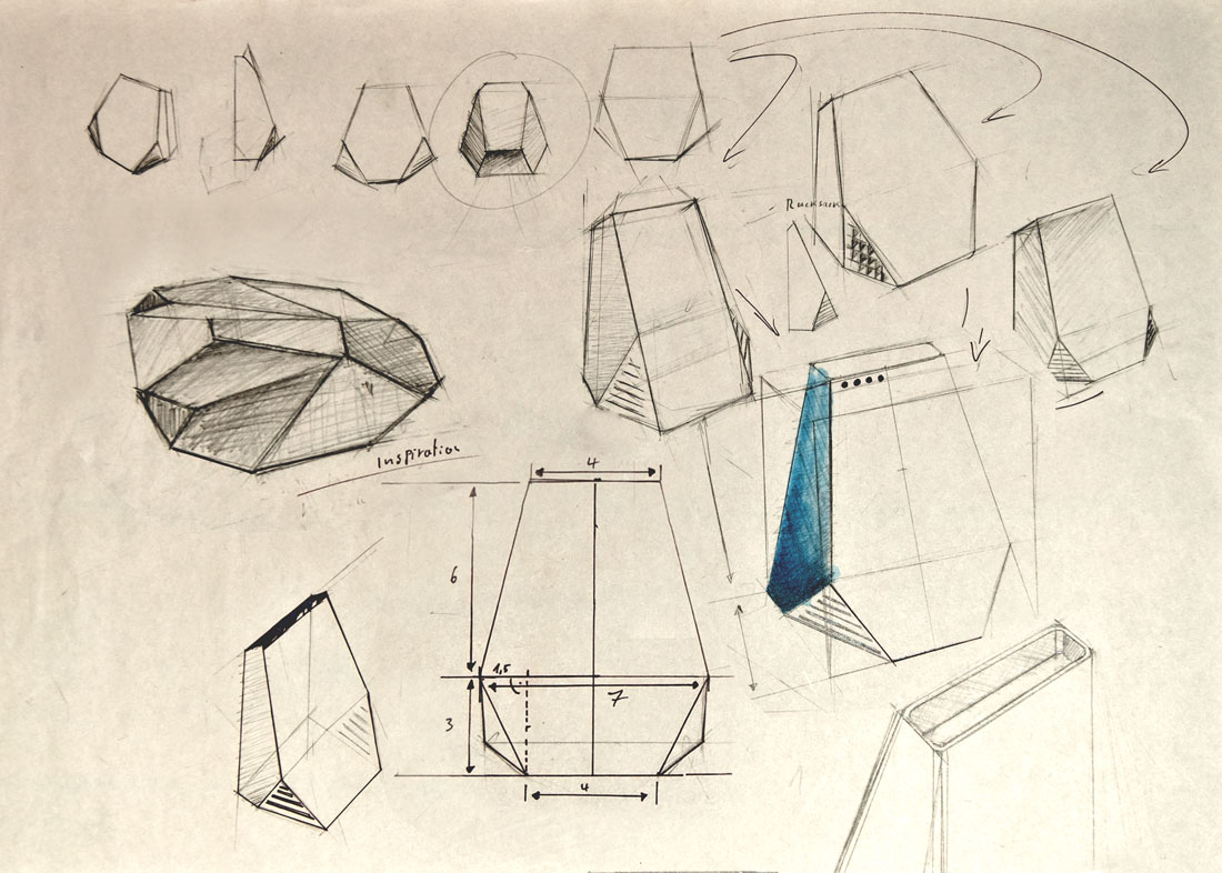 Entwürfe werden skizziert und angepasst. Sie sind durch Präsentationen und Reviews stark in den Design-Prozess eingebunden. Die ersten Entwürfe orientieren sich an Ihren Designrichtlinien und der Ausrichtung der Marke. Die Skizze ist hier ein effektives Mittel, um die Designsprache zum Ausdruck zu bringen und konzeptionell passende Lösungen zu evaluieren. Zudem ist das Skizzieren selbst ein kreativer Vorgang, der die Formsprache auf experimentelle Weise herauskristallisiert.